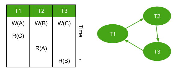 consider two transactions [T1, T2], where timestamp(T1) < timestamp(T2). T1 writes to a key ‘A’. Later, T2 reads from key ‘A’, before T1 has committed.