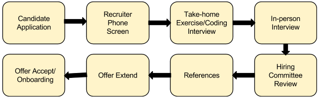 Hiring Committee Review: After the onsite interview is complete, feedback from the interview process is shared across the interview team. Interview team members review the feedback and independently reach a decision of hire/no-hire based on the comprehensive feedback. At the HC review, the interview team reaches a consensus on whether to reject the candidate or proceed with reference calls.